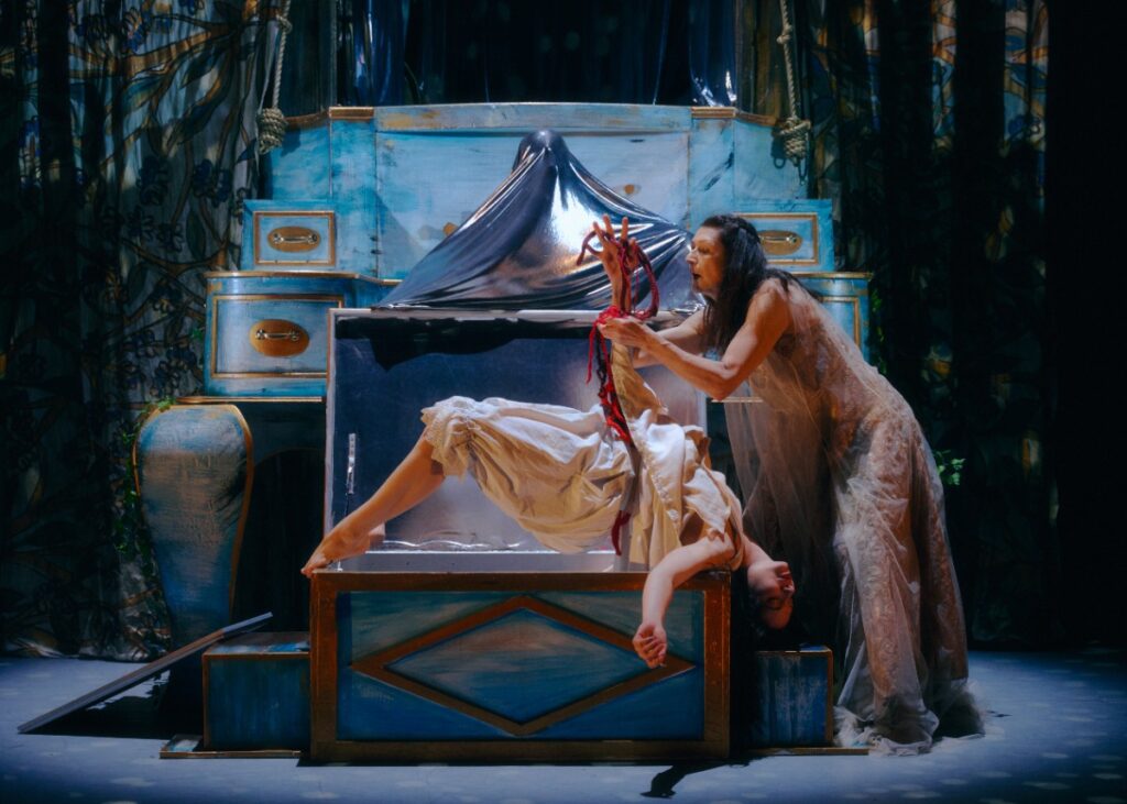 In the darker version, Snow White: The Sacrifice, narrated by Sarah Parish, artistic director Liv Lorent explores female aging by delving into the psyche of a desperate Queen enslaved by her own harsh reflection. This is a tragic nightmare centred around the very topical dread of aging, which follows an antihero’s battle against invisibility through enacting cruel, monstrous fantasies.