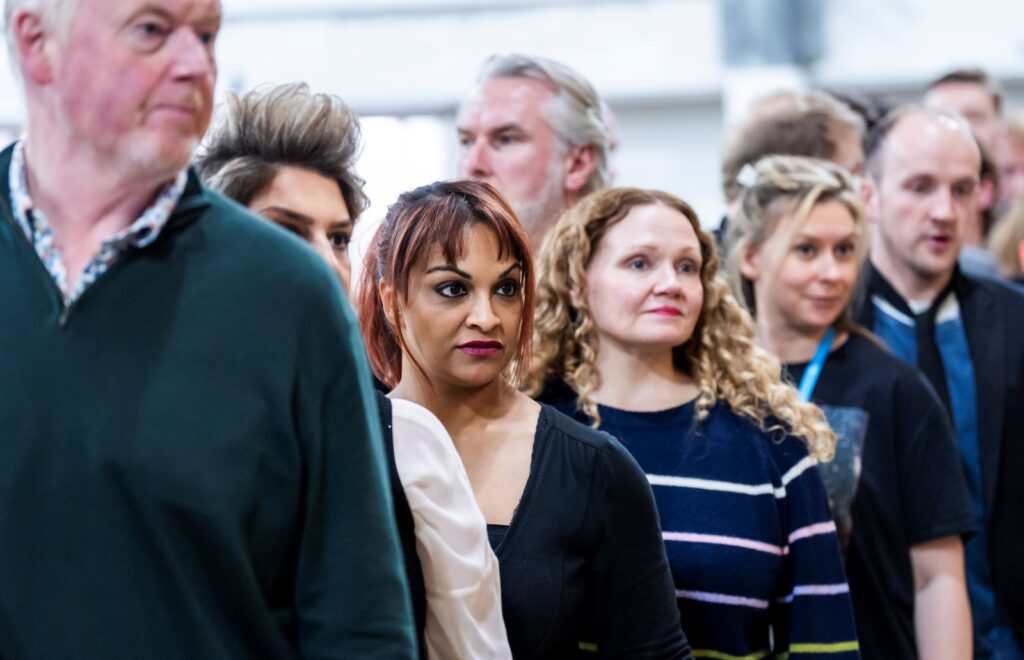 Top image: The cast of ENO’s Rise and Fall of the City of Mahagonny 2026, Rehearsal Images © Tristram Kenton (image supplied)