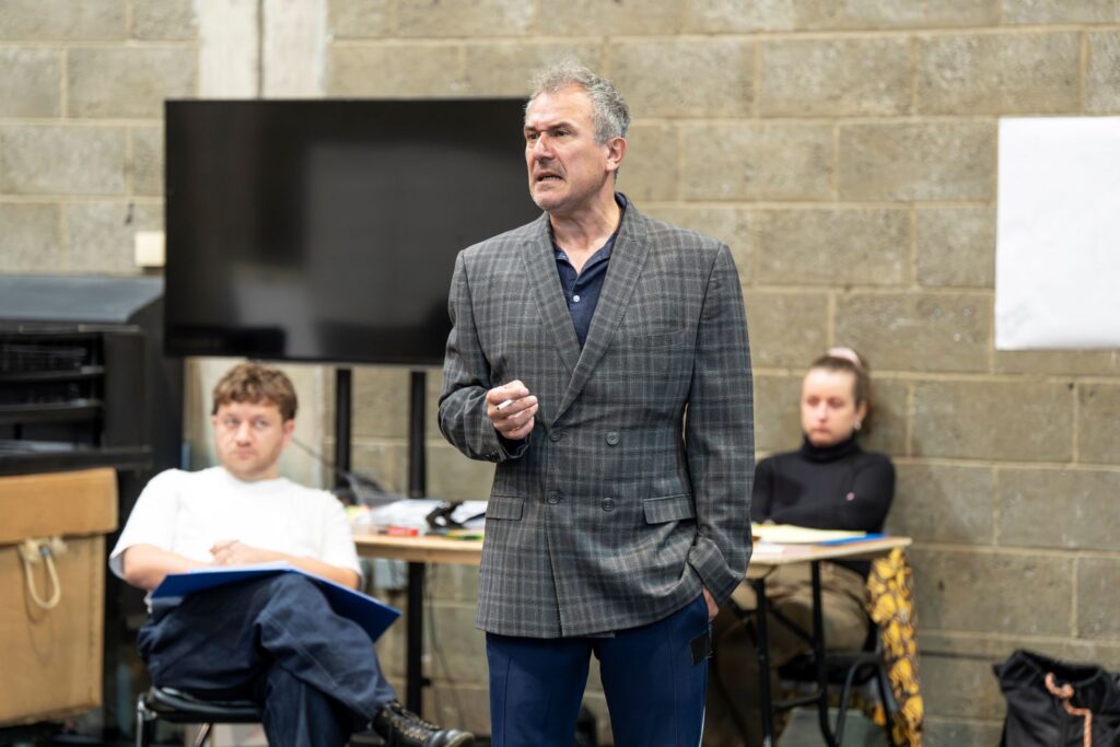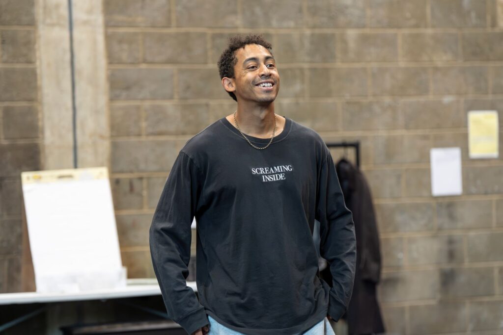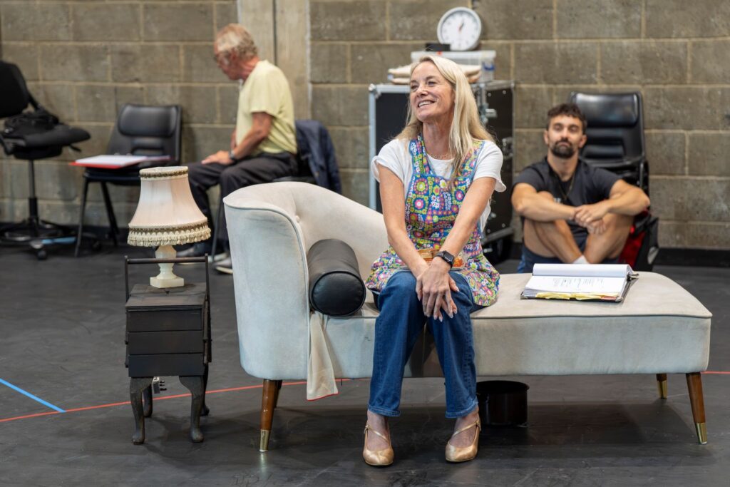 Here’s Jordan Stephens, Tamzin Outhwaite and the cast of Entertaining Mr Sloane in rehearsals for the upcoming production, which will open at the Young Vic on September 15.
