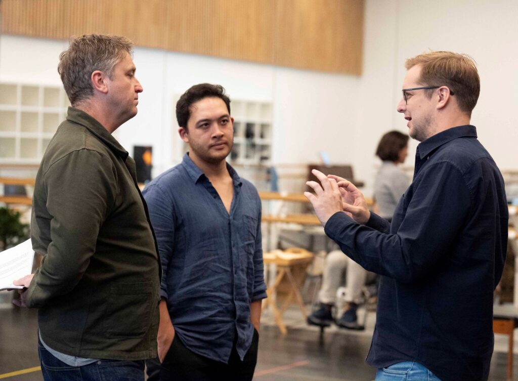 Top image: Guy Unsworth (director), Rhîan Crowley-McLean, Nathalie Barclay & Rupert Sadler in rehearsals, credit Alastair Muir (all images supplied)