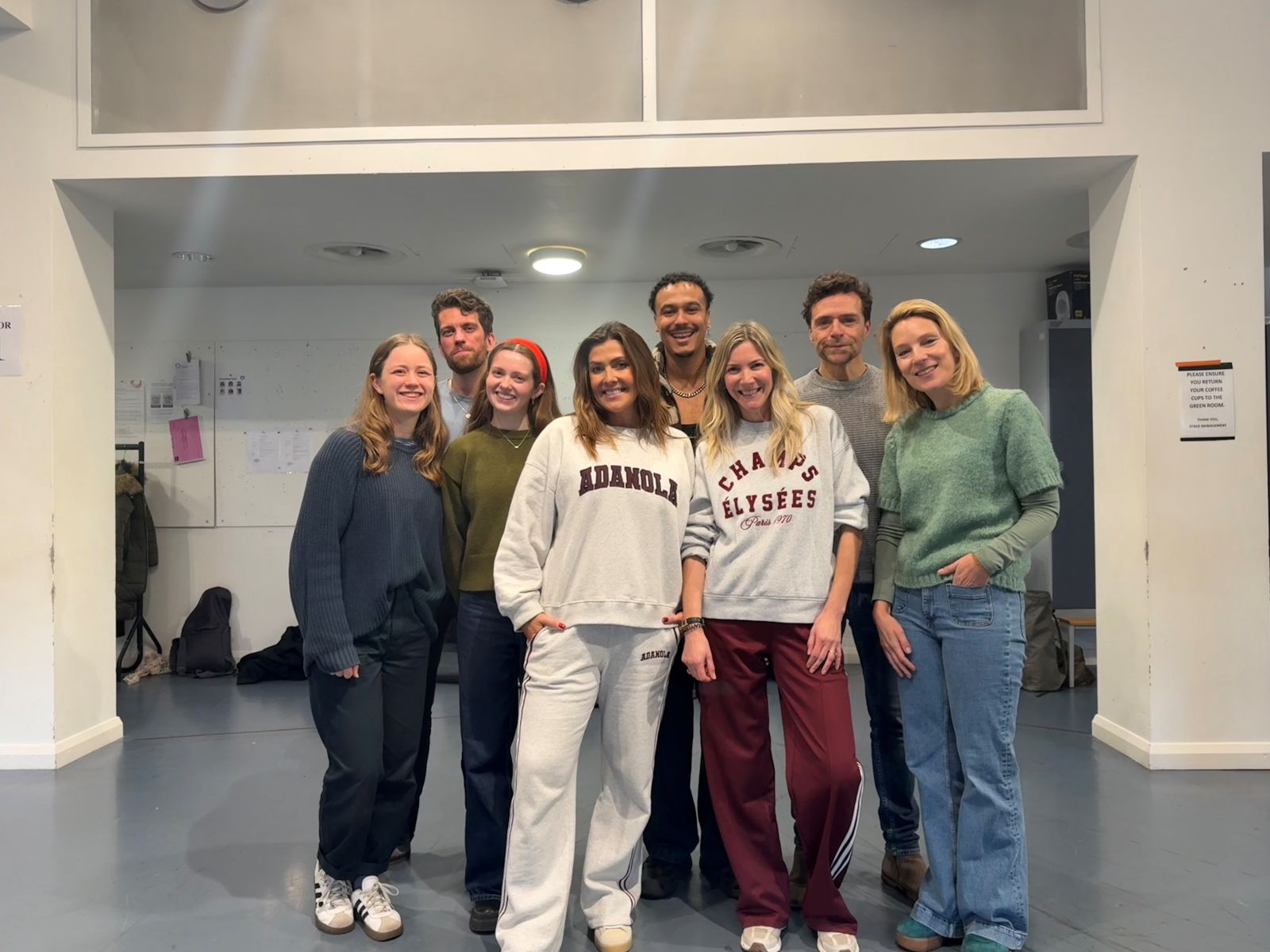 Top image: Cast rehearsals Single White Female (L-R Francesca McBride, Patrick McHugh, Amy Snudden, Kym Marsh, Andro, Lisa Faulkner, Jonny McGarrity, Anna Ruben) Credit_ Single White Female UK Tour (image supplied)