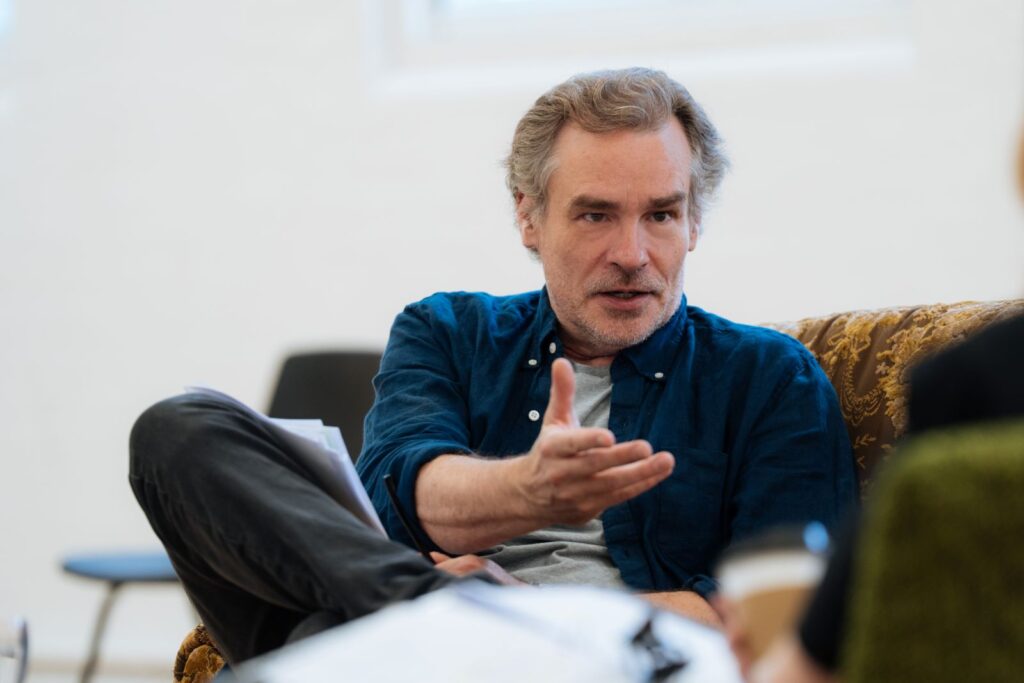 Top image: Robert Sean Leonard, Teunkie Van Der Sluijs and Paten Hughes – Interview (Rehearsal Photos) – Photo credit Helen Murray (image supplied)